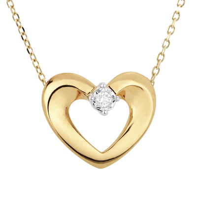 Colier inimă drăguţă aur galben de 9K şi diamant - 45cm