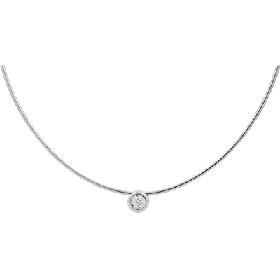 Un colier rigid încoronat de un diamant, creând un aspect delicat şi contemporan.