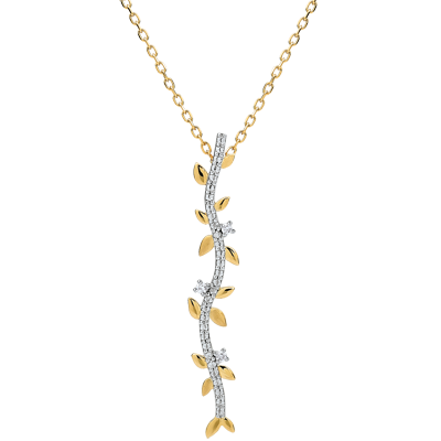 Frunze de aur galben strălucitoare şi frunze cu lustru periat manual se adună pentru a vă îmbrăca cu romantism decolteul.