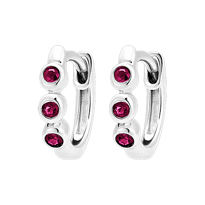 Aceste creole Trio de Rubine din aur alb oferă un joc de culoare plin de viață și captivant