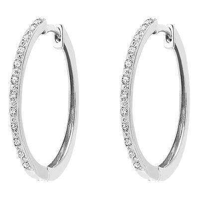 O pereche de cercei creole din aur alb semi-pavate pentru un plus de strălucire și modernitate. Inel cu diametrul de 18 mm