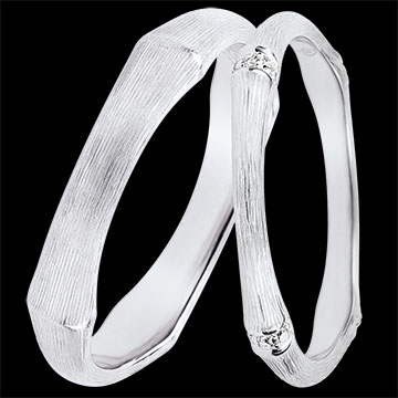 Un elegant duo de verighete din aur alb, inspirat de o ramură de bambus și finisat cu un aspect periat sofisticat.