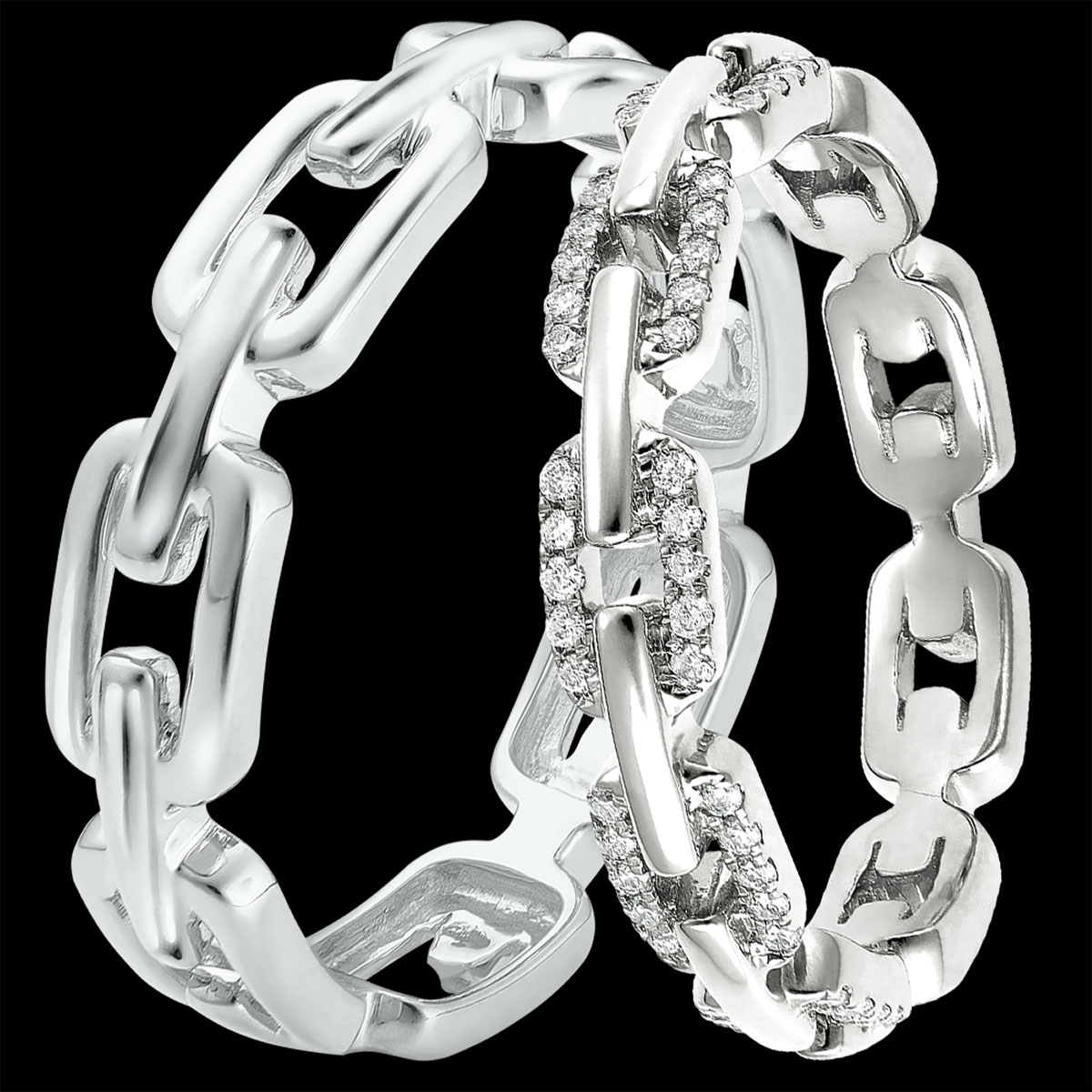 Duo de verighete Maillon Cubain – aur alb & diamante – 18 karate