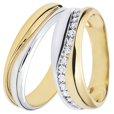 Acest inel ce îmbină cu gust aurul galben şi aurul alb este străbătut de o curbă armonioasă pe care domină 15 diamante. Acest inel poate fi purtat ca verighetă modernă sau ca inel de excepţie.