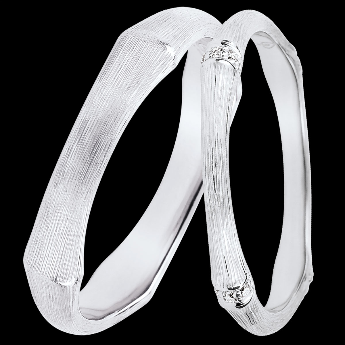 Un duo elegant de verighete din aur alb, inspirate de delicatețea unei ramuri de bambus, cu o superbă finisare mată.
