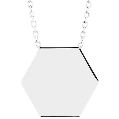 Colier cu medalion hexagonal de gravat - Aur alb 9 carate