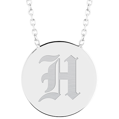 ABC YOURS Nº9Colier medalion rotund gravat - Aur alb 9 carate ID : 4921
