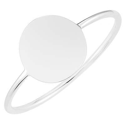 Inel cu medalion rotund de gravat - Aur alb 9 carate