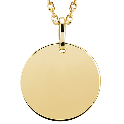 Un medalion din aur, ce poate fi personalizat după cum doriți, alegând dintre selecțiile de gravuri Edenly.