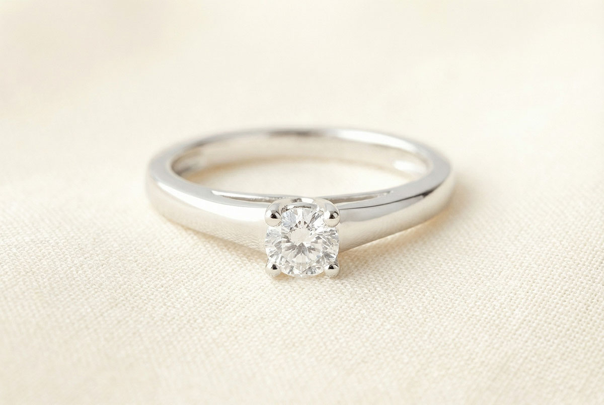 Puritatea unui diamant central pe o montură sobră şi atemporală.