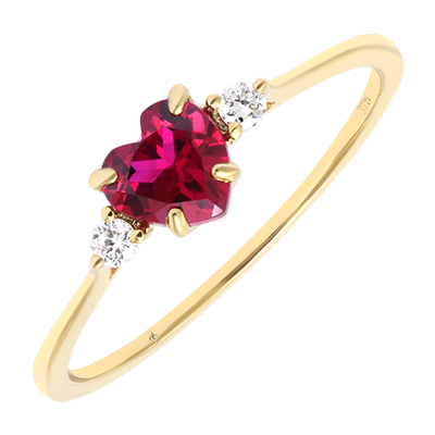 SECRET PREţIOS NR. 18Inel Inimă - Aur galben 9 carate - Rubin sintetic, Diamante de laborator ID : 1578