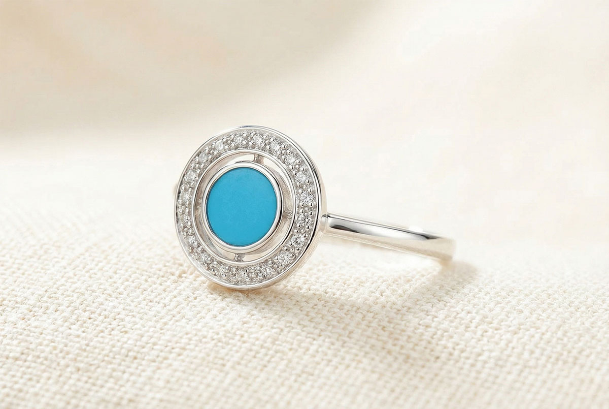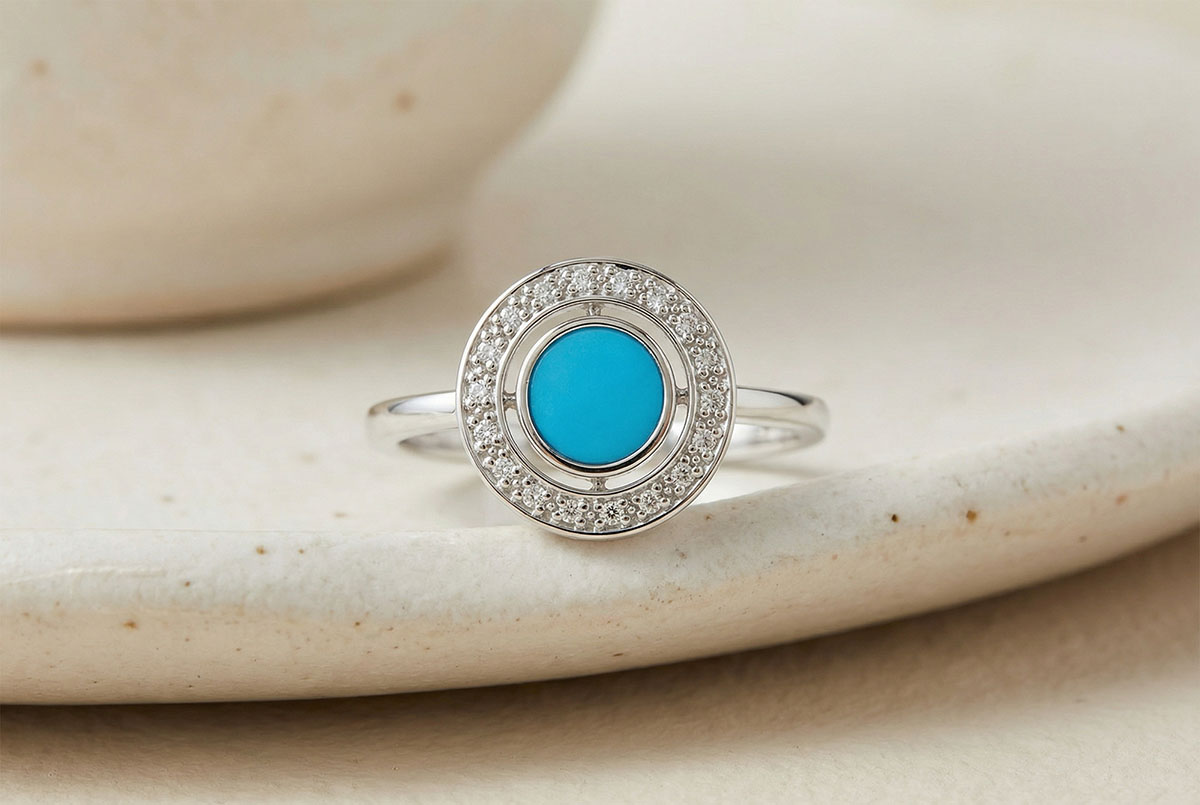 Inel Beatitudine - Turcoaz şi diamante - Aur alb de 18K