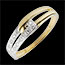 O curbă de aur galben se unește cu un dreptunghi de aur alb cu 13 diamante albe (0,05 ct).