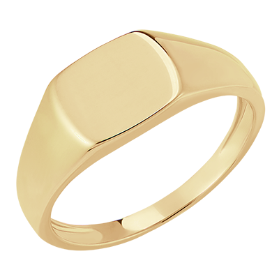 Un inel cu sigiliu din aur galben, cu o placă sub formă cilindrică.