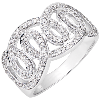 Un inel cu bucle pavate , care revizitează cu grație și delicatețe, motive și ornamente imperiale