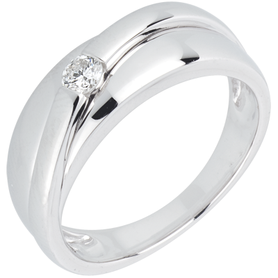 Un diamant solitaire încrustat pe o eşarfă pusă pe un inel de aur alb