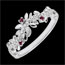 Este încrustat cu 4 diamante de calitate HSI în total 0,016 carate şi 3 rodolite Very Good de 0,036 carate, exprimând delicateţe şi eleganţă.