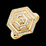Inelul Hexad din aur galben 9 carate se remarcă prin motivul său hexagonal unic, complet pavé cu 55 diamante albe în total 0,345 carate. Acest design captează lumina delicat la fiecare mișcare.