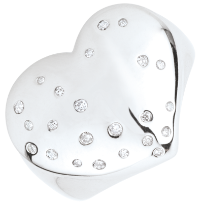 O inimă bombată de argint pătată de diamante vă va orna degetul cu feminitate.