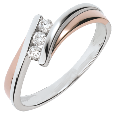 Inel de logodnă Cuib Preţios - Trilogie diamant - 3 diamante - aur alb şi aur roz de 18K