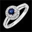 Piatra centrală este un safir albastru de 0,378 carate, de calitate Very Good.