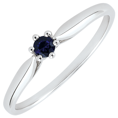Delicateţea unui inel bizotat, încoronat de un safir fixat în 6 gheruţe.