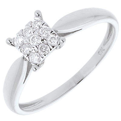Inel mlădiere din aur alb de 18K zar pavat - 9 diamante