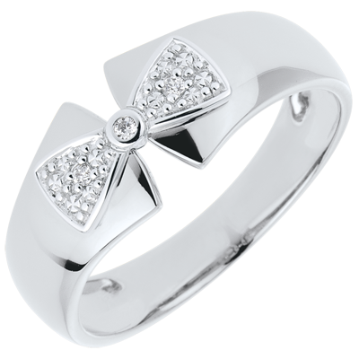 O panglică de aur alb închisă de un nod de aur alb şi diamante pentru a înconjura degetul dumneavoastră.