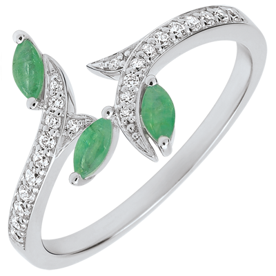 O ramură strălucitoare este fixată în etern, nu am putea-o califica drept milenară sau proaspăt apărută. Frunzele preţioase, marquise de smarald, sunt subliniate de aurul alb încrustat cu briliante ce le serveşte drept sipet.