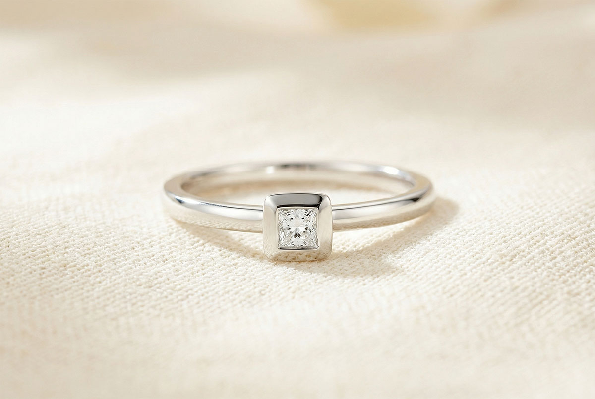 Inel Prospețime - Pătrat - aur alb de 9 carate și diamant