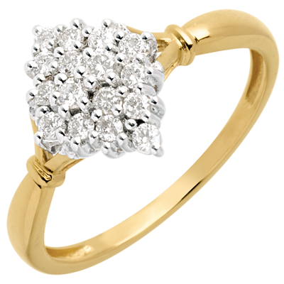 Inel romb pavat - 0.33 carate - 16 diamante - aur alb şi aur galben de 18K