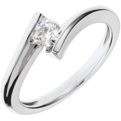 Un diamant solitaire încrustat în aur alb făcând să dispară totul în jurul acestei viziuni strălucitoare.