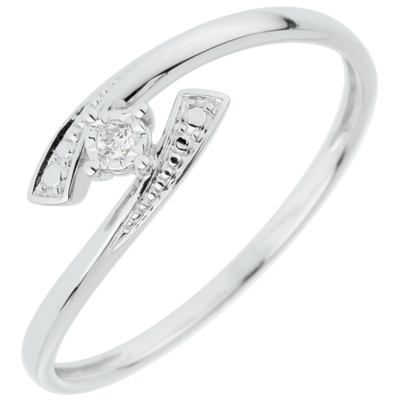 Inel solitaire Cuib Preţios - Răspunde Da - aur alb de 18K