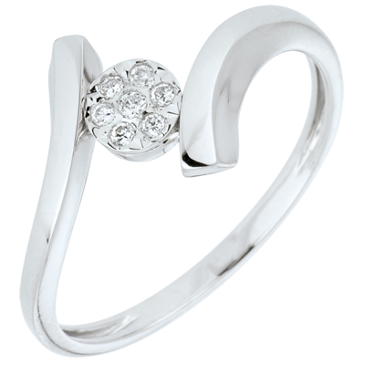 Inel solitaire Cuib Preţios - Sâmbure de Iubire - aur alb de 9K