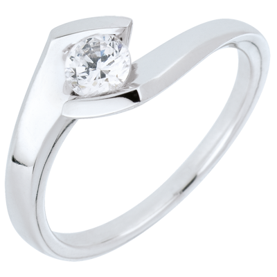 Inel solitaire Cuib Preţios - Seară de vară - aur alb de 18K - 0.32 carate