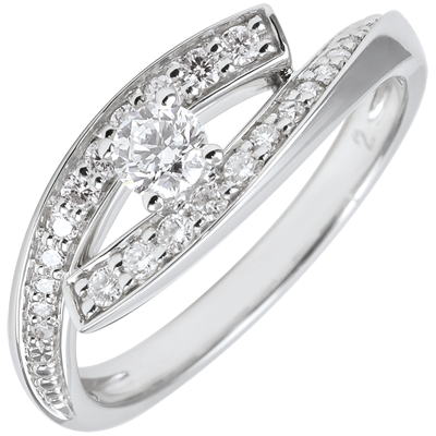 Inel Solitaire Destin - Diva - aur alb de 9K - model mic - 0.08 carate