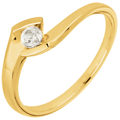 Inel solitaire Seară de vară aur galben de 9K - diamant 0.12 carate