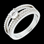 - Montură arhitecturală cu trei inele pavate pentru a evidenția diamantul solitar