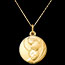 Această medalie din aur galben de 18 karate surprinde un moment de tandrețe între Fecioara Maria și Pruncul Iisus, simbol al iubirii materne și divine.