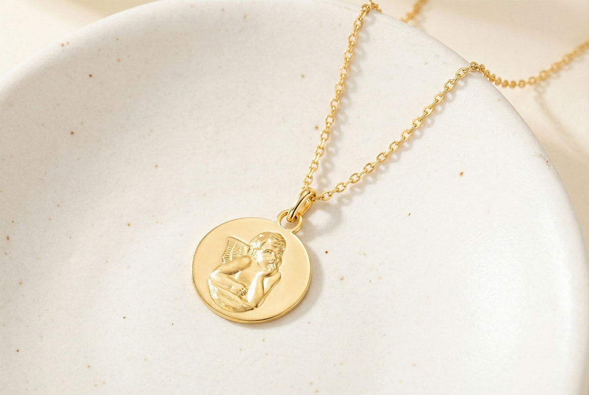 Medalion cu Arhanghelul Rafael Esențial - 13mm - aur galben de 9 carate