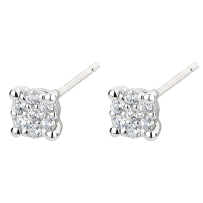 O miriadă de diamante precum stelele în rendez-vous formează un solitaire îndrăzneţ pentru fiecare dintre cei doi cercei.