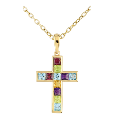 O cruce originală şi feminină, împodobită de citrin, ametist, peridot, topaz albastru şi rodolit.