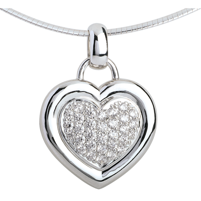 Un simbol pasional şi atemporal, pentru un pandantiv din aur alb pavat cu diamante încărcate de emoţie.
