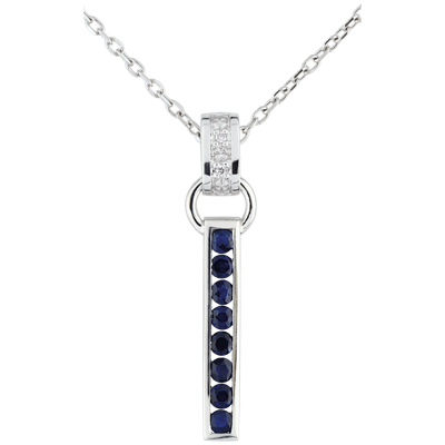 O bandă de safire, elegantă şi atemporală, este suspendată printr-o buclă de un anou diamantat.