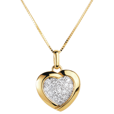 Delicateţea unui pandantiv "inimioară" pavat concentric, pentru una dintre cele mai dulci promisiuni.