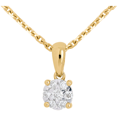 Pandantiv pavat şi anou din aur galben de 18K - 0.14 carate - 7 diamante