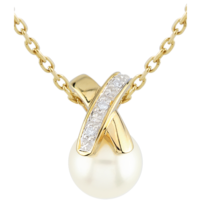 Pandantiv încrucişat Perlă - aur galben de 9K