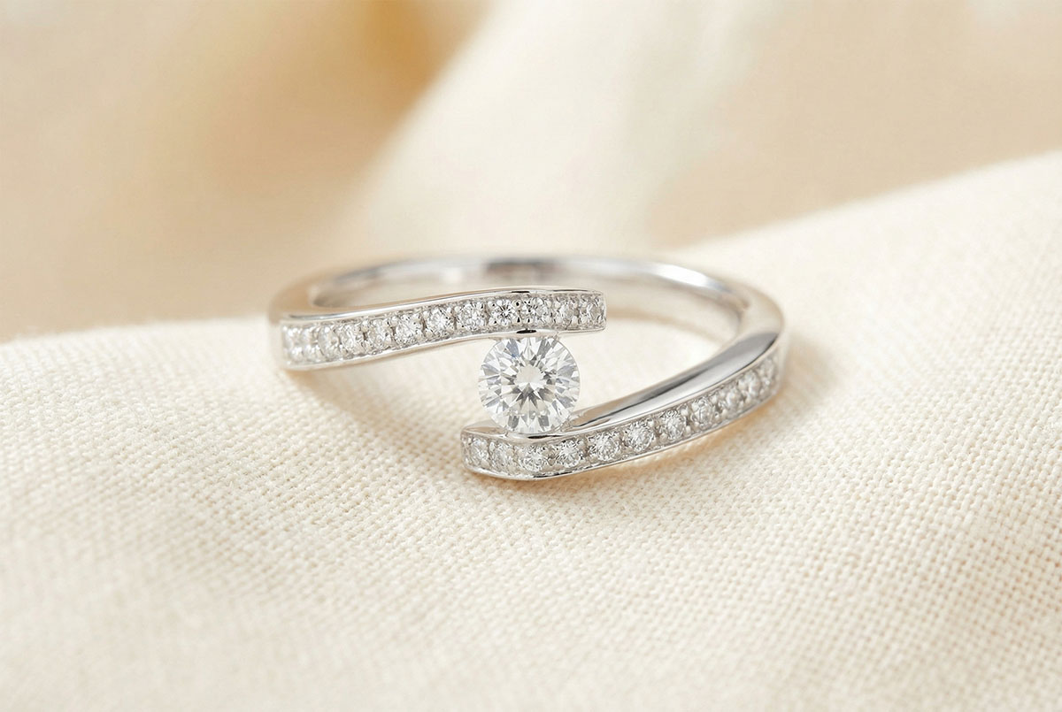 Solitaire Cuib Preţios centură de diamante - Promisiune - aur alb de 9K - diamante de 0.22 carate