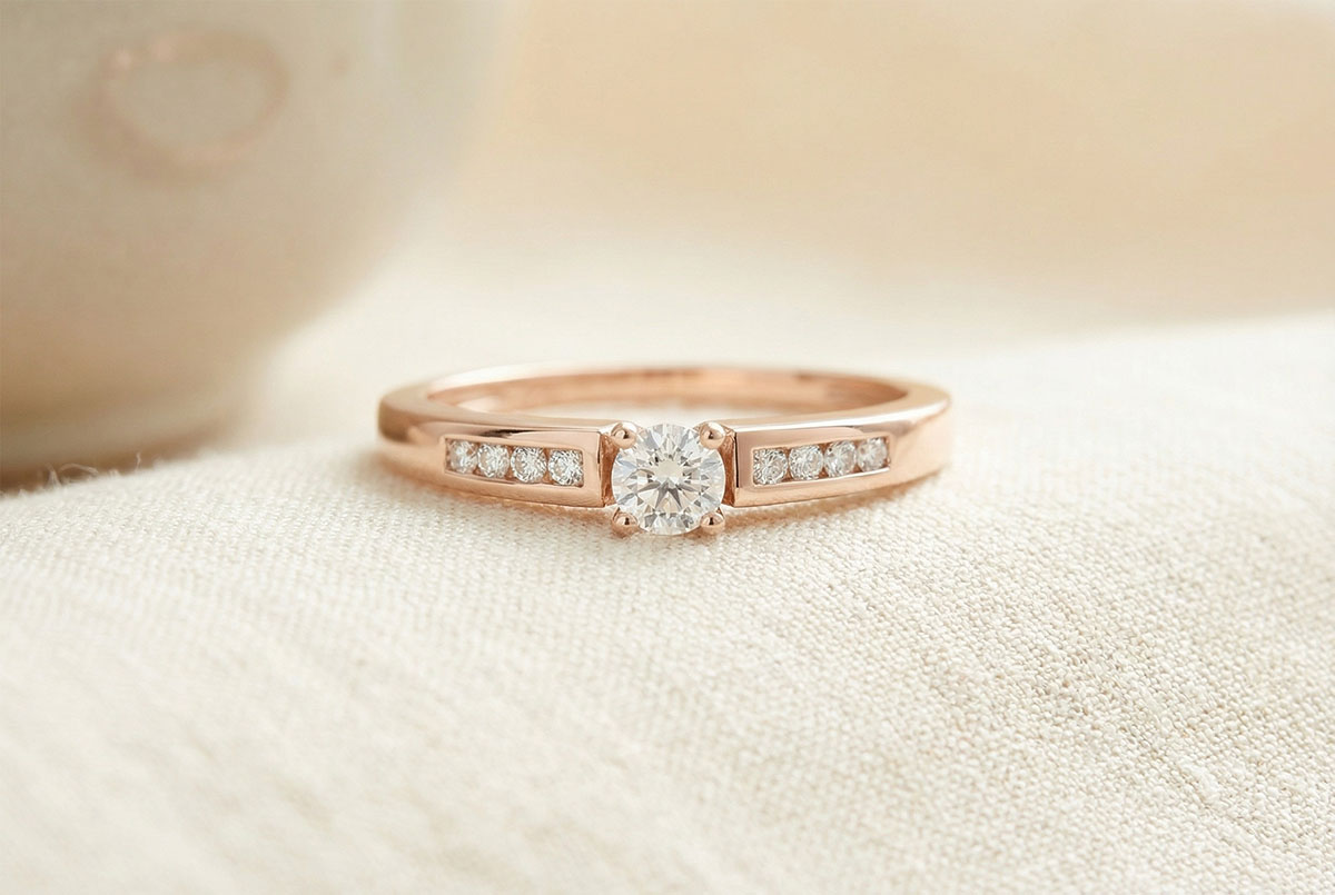 Solitaire Octavă aur roz de 18K - diamant 0.13 carate