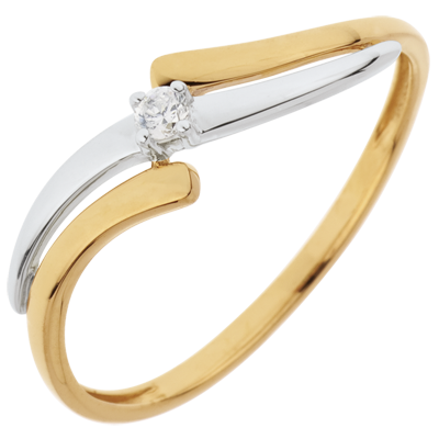 Inel Solitaire Evadare - diamant 0.04 carate - aur alb şi aur galben de 18K